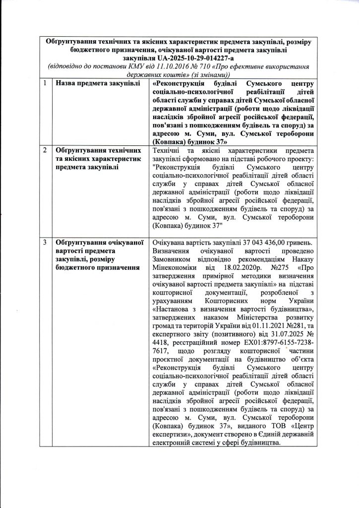 Обгрунтування технічних та якісних характеристик предмета закупівлі UA-2025-10-29-014227-a